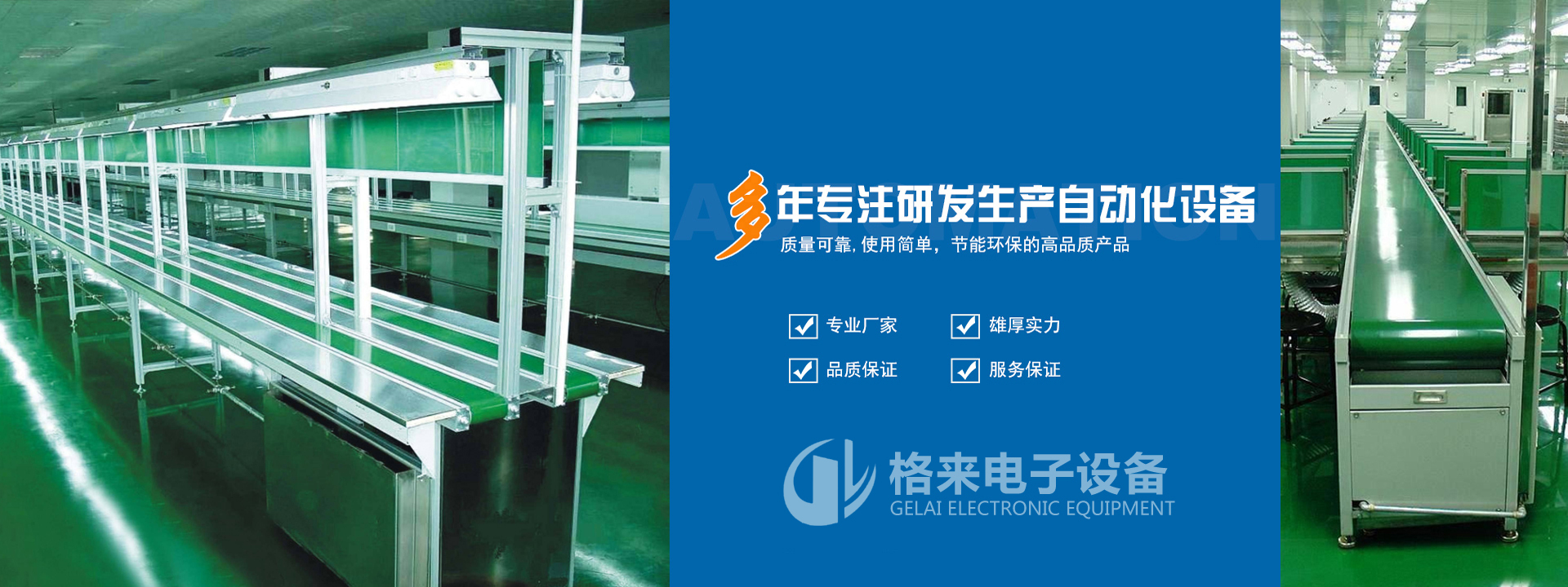 中山市格來電子設備制造有限公司專業研發生產自動化設備,主要產品有:鏈板線系列、流水線系列、倍速鏈生產線系列、 家電輸送裝配線、滾筒生產線系列、波峰焊系列、LED老化線設備等。